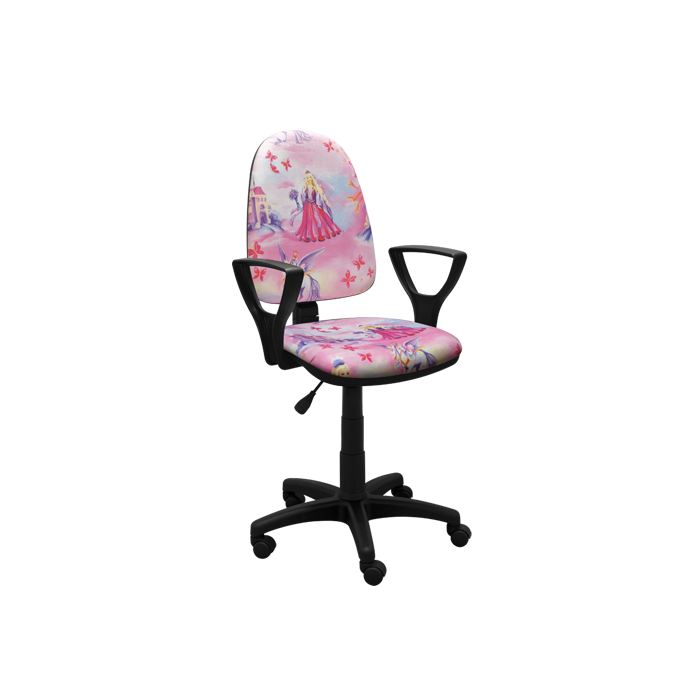 Obrotowe krzesło dla dzieci. Wykonane z pianek tapicerskich o dużej gęstości. Mechanizm krzesła typu CPT – wyposażony w regulację kąta nachylenia oparcia. Podłokietniki stałe - polipropylenowe. Podstawa wykonana z poliamidu z dodatkiem włókna szklanego. Produkt na zamówienie – czas realizacji 3 dni robocze.