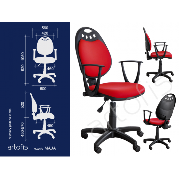 Obrotowe krzesło biurowe. Wykonane z pianek tapicerskich o dużej gęstości. Mechanizm krzesła typu CPT – wyposażony w regulację kąta nachylenia oparcia. Podłokietniki stałe - polipropylenowe. Podstawa wykonana z poliamidu z dodatkiem włókna szklanego. Części tapicerowane prezentowanego krzesła wykonane są w tkaninie BASIC tkb-090. Produkt na zamówienie – czas realizacji 3 dni robocze.